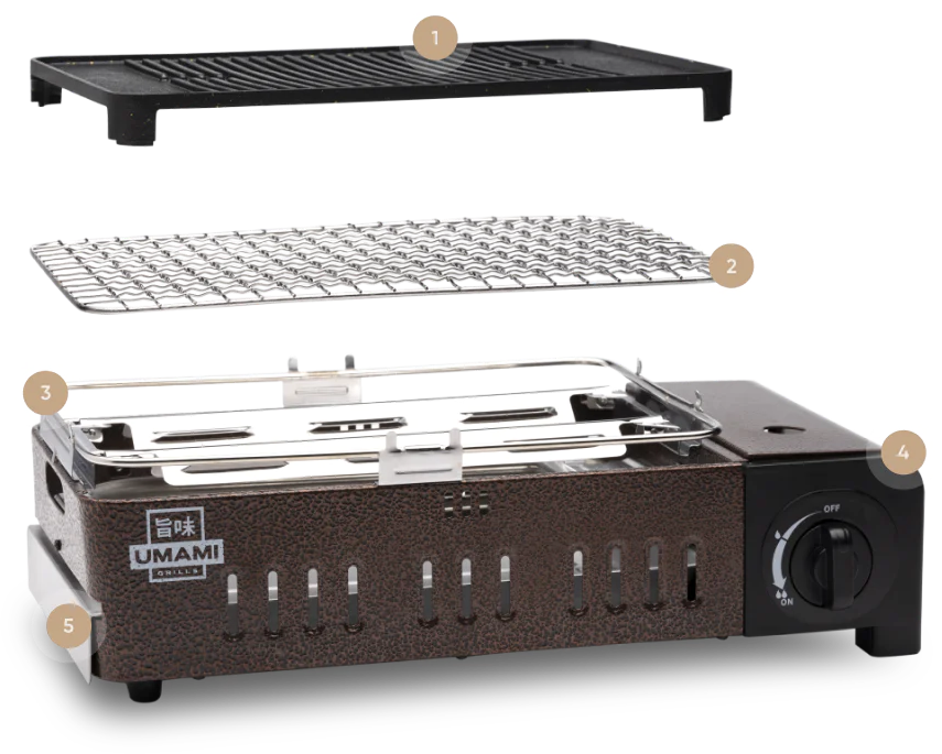 Umami makes grilling truly effortless with a portable gas grill design. Just pop in a fuel canister and you’re ready to cook.